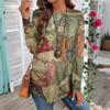 Women's Casual Plus SizeLong Sleeved Round Neck Vintage Ethnic Printing T-shirt Top Pullover