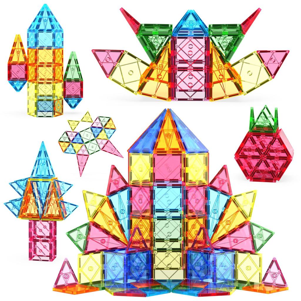 AOMACO Magnetic Building Blocks, Educational Toys, 3D Puzzle, Colorful Transparent Magnetic Tiles, STEM Education, Spatial Recognition, Imagination,
