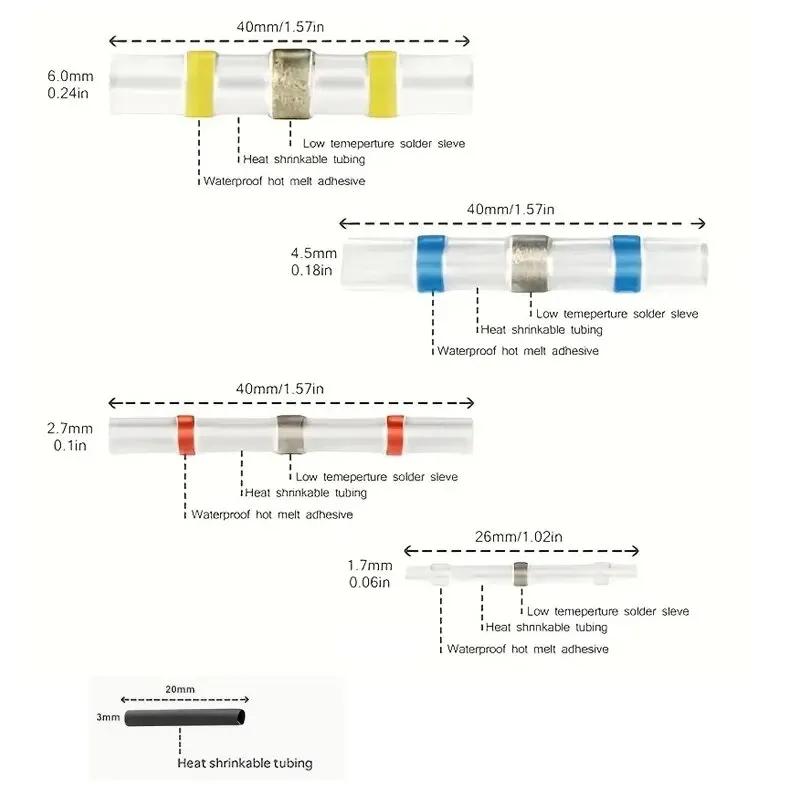 Electrical Wire Connectors Insulated Butt Splice Heat Shrink Solder Terminal Waterproof Butt Connectors Wire Cable Terminal