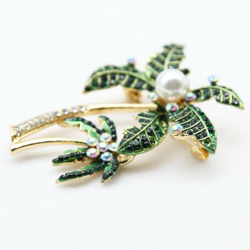 Fashion Green Rhinestone Coconut Tree Brooches For Women Clothing Coat Banquet Party Accessories Gifts