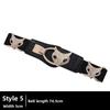 This versatile women's elastic waist belt features crystal embellishments and a metal alloy buckle, offering a stylish touch to daily outfits, suitable for various waist sizes. Its sleek black design with trendy buckle details enhances casual or office attire. Ideal for everyday wear, it supports easy adjustment and comfort. Wipe clean with a damp cloth to maintain its appearance.