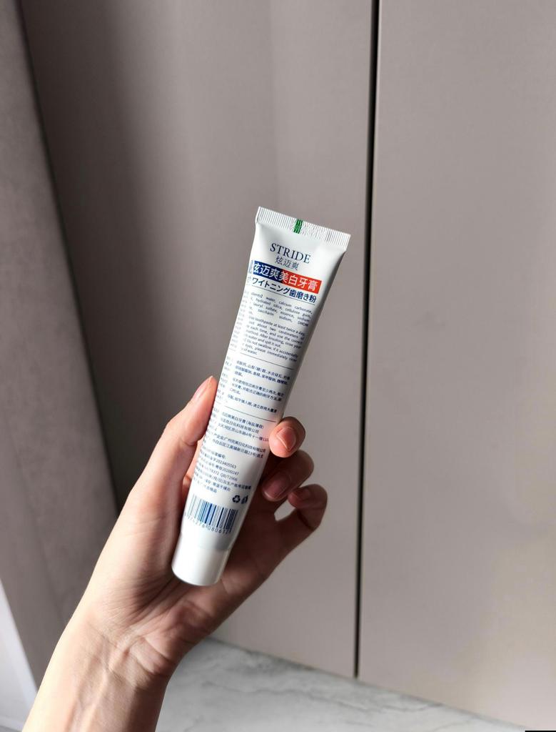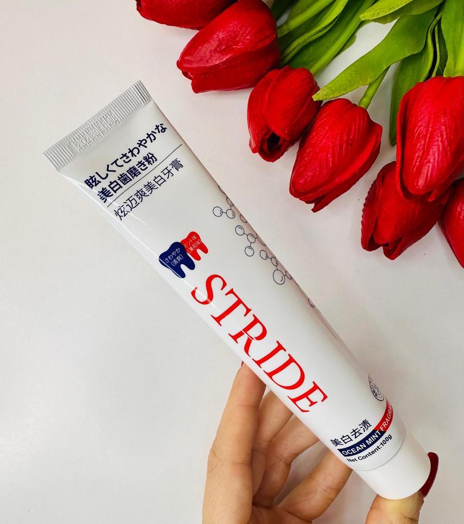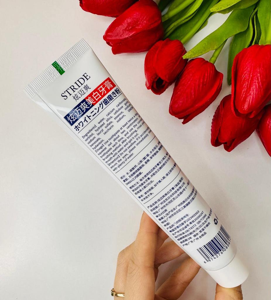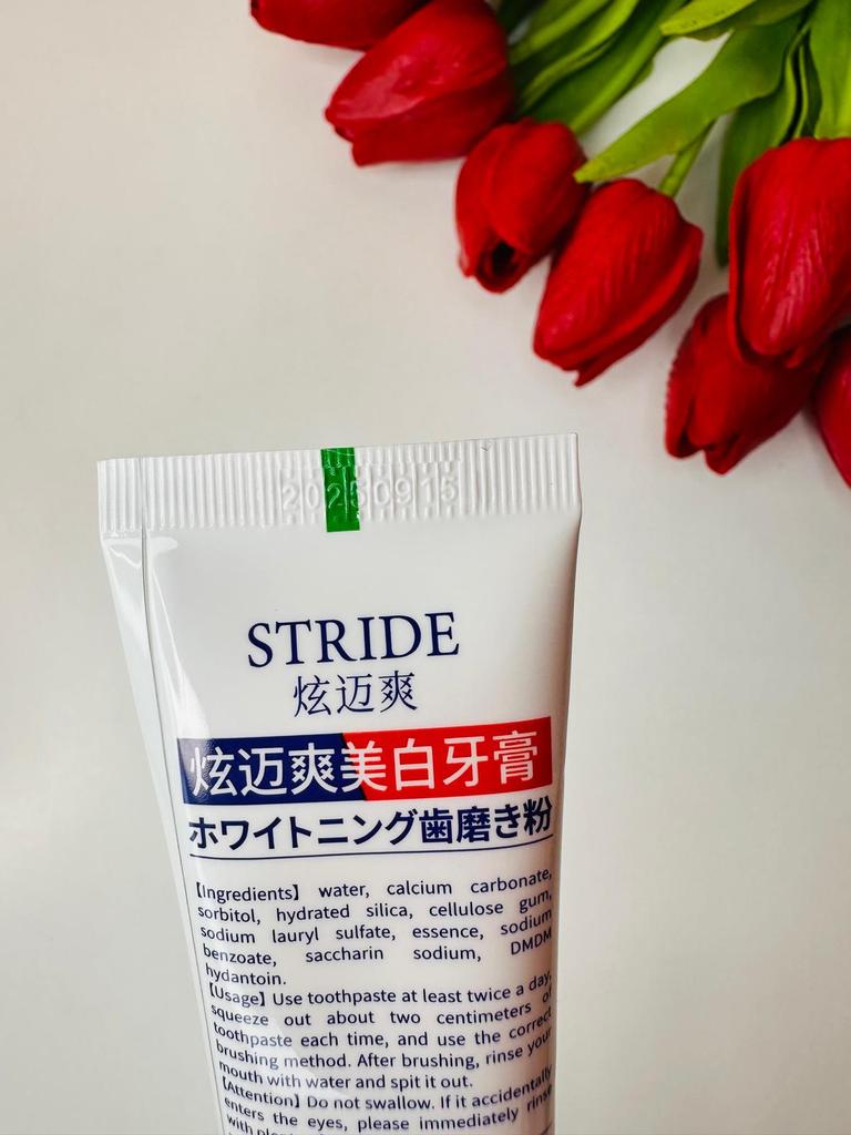 Stride Whitening Toothpaste (Japan) Japanese dental aesthetics: effectiveness and protection Japanese oral hygiene products are famous for not being excessively abrasive, focusing more on the chemical removal of stains and enamel repair rather than aggressive "scrubbing". ✨ Main Features Stride toothpaste stands out for a formula that aims to restore the natural whiteness of teeth without causing the classic sensitivity from chemical whitening. • Stain-Removing Technology: Uses agents that dissolve surface stains (coffee, tea, nicotine) by acting on the protein bonds that fix them to the enamel. • Protective Action: In addition to whitening, it creates a barrier that prevents new pigments from fixing immediately. • Taste and Texture: Unlike Western products that are often very "mentholated" and spicy, Stride usually has a very fine, clean, and persistent mint flavor, with a dense but not excessive foam. 🦷 Results on Teeth 1. Natural Whitening: Don't expect an immediate "bleach" effect (which often damages the enamel), but a return to the natural brightness of the tooth already after the first week. 2. Sensation of Cleanliness: The surface of the teeth feels extremely smooth to the touch with the tongue, a sign of effective plaque removal. 3. Zero Sensitivity: It's perfect for those with sensitive teeth but don't want to give up a brighter smile. 📦 Logistics and Shipping A remarkable strength was the delivery time. • Origin: Japan. • Arrival time: 15 days. • Assessment: Receiving a product from Japan in just two weeks in Italy is an excellent result. Usually transoceanic shipments can take up to a month; 15 days indicate premium logistics management and a smooth customs clearance. 📝 Final Considerations The strong point: The ability to polish and brighten without minimally damaging the enamel or irritating the gums. Who I recommend it to: To those who consume a lot of coffee or tea and are looking for a high-quality daily product that is superior to common supermarket toothpastes.