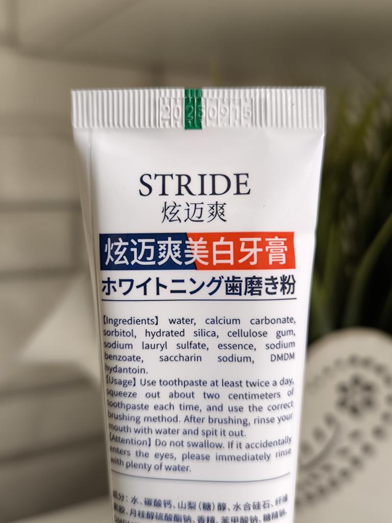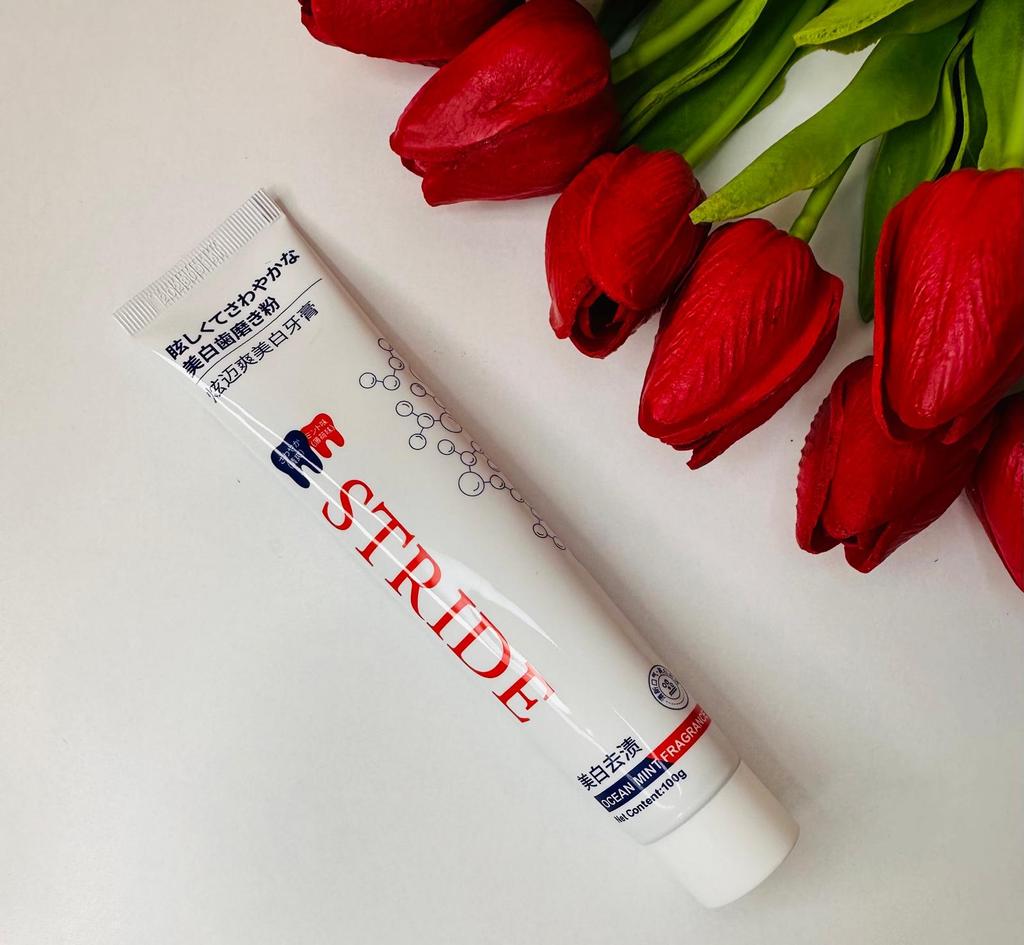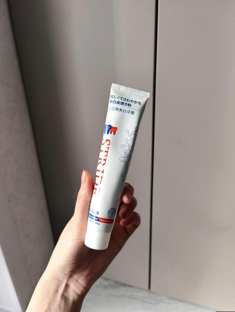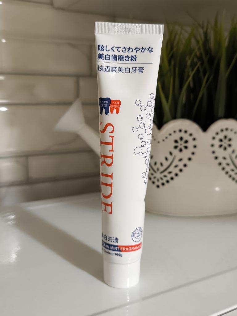 Stride Whitening Toothpaste (Japan) Japanese dental aesthetics: effectiveness and protection Japanese oral hygiene products are famous for not being excessively abrasive, focusing more on the chemical removal of stains and enamel repair rather than aggressive "scrubbing". ✨ Main Features Stride toothpaste stands out for a formula that aims to restore the natural whiteness of teeth without causing the classic sensitivity from chemical whitening. • Stain-Removing Technology: Uses agents that dissolve surface stains (coffee, tea, nicotine) by acting on the protein bonds that fix them to the enamel. • Protective Action: In addition to whitening, it creates a barrier that prevents new pigments from fixing immediately. • Taste and Texture: Unlike Western products that are often very "mentholated" and spicy, Stride usually has a very fine, clean, and persistent mint flavor, with a dense but not excessive foam. 🦷 Results on Teeth 1. Natural Whitening: Don't expect an immediate "bleach" effect (which often damages the enamel), but a return to the natural brightness of the tooth already after the first week. 2. Sensation of Cleanliness: The surface of the teeth feels extremely smooth to the touch with the tongue, a sign of effective plaque removal. 3. Zero Sensitivity: It's perfect for those with sensitive teeth but don't want to give up a brighter smile. 📦 Logistics and Shipping A remarkable strength was the delivery time. • Origin: Japan. • Arrival time: 15 days. • Assessment: Receiving a product from Japan in just two weeks in Italy is an excellent result. Usually transoceanic shipments can take up to a month; 15 days indicate premium logistics management and a smooth customs clearance. 📝 Final Considerations The strong point: The ability to polish and brighten without minimally damaging the enamel or irritating the gums. Who I recommend it to: To those who consume a lot of coffee or tea and are looking for a high-quality daily product that is superior to common supermarket toothpastes.