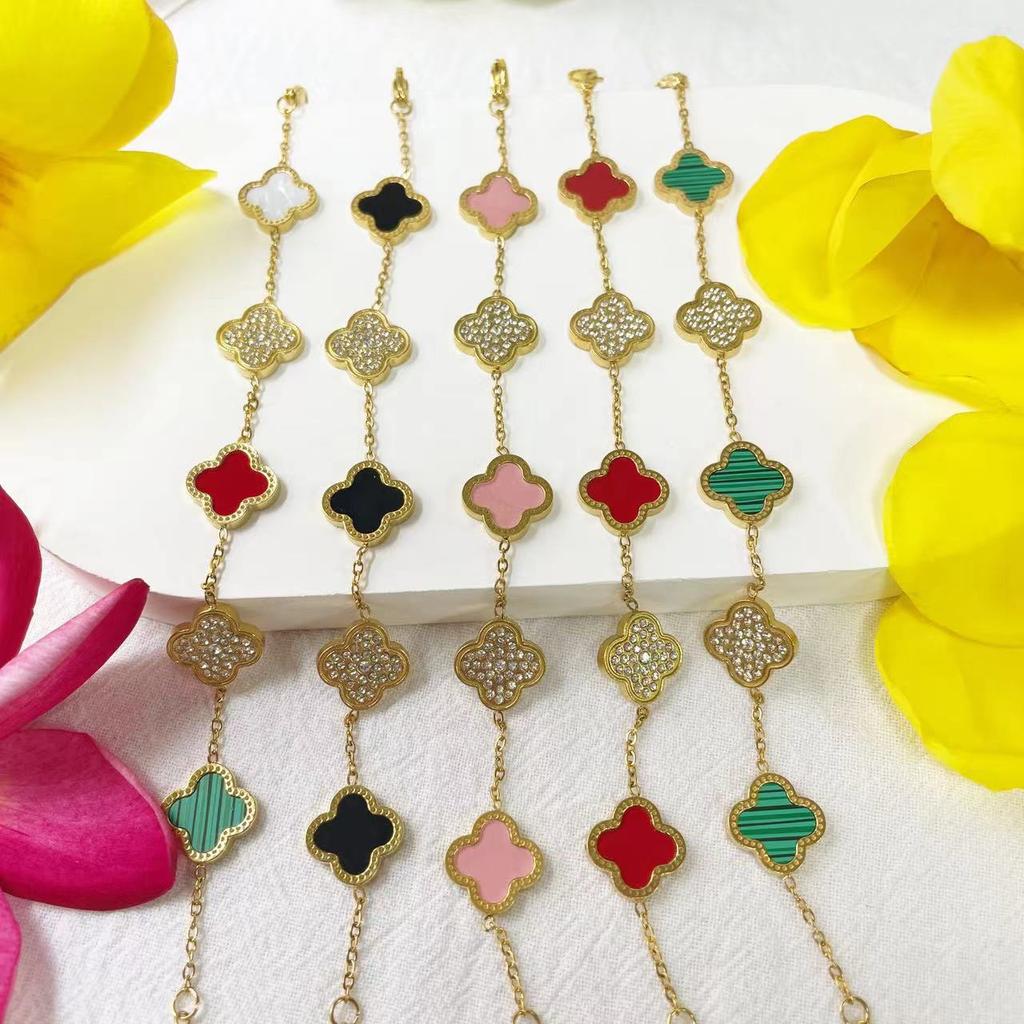 Fashion Clover Zircon Single Sided Bracelet Style