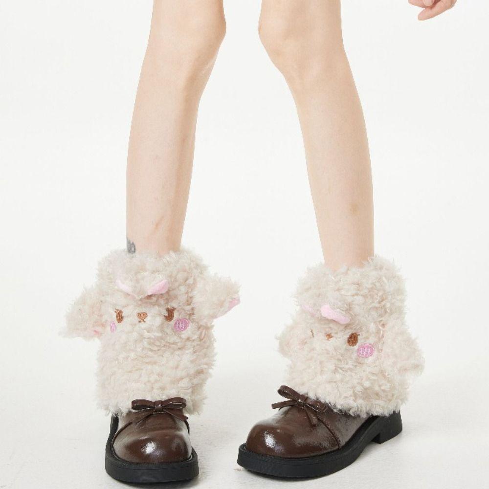 Spicy Girls Sheep Ear Leg Warmers JK Plush Boots Cover Cute Bow Foot Cover Streetwear