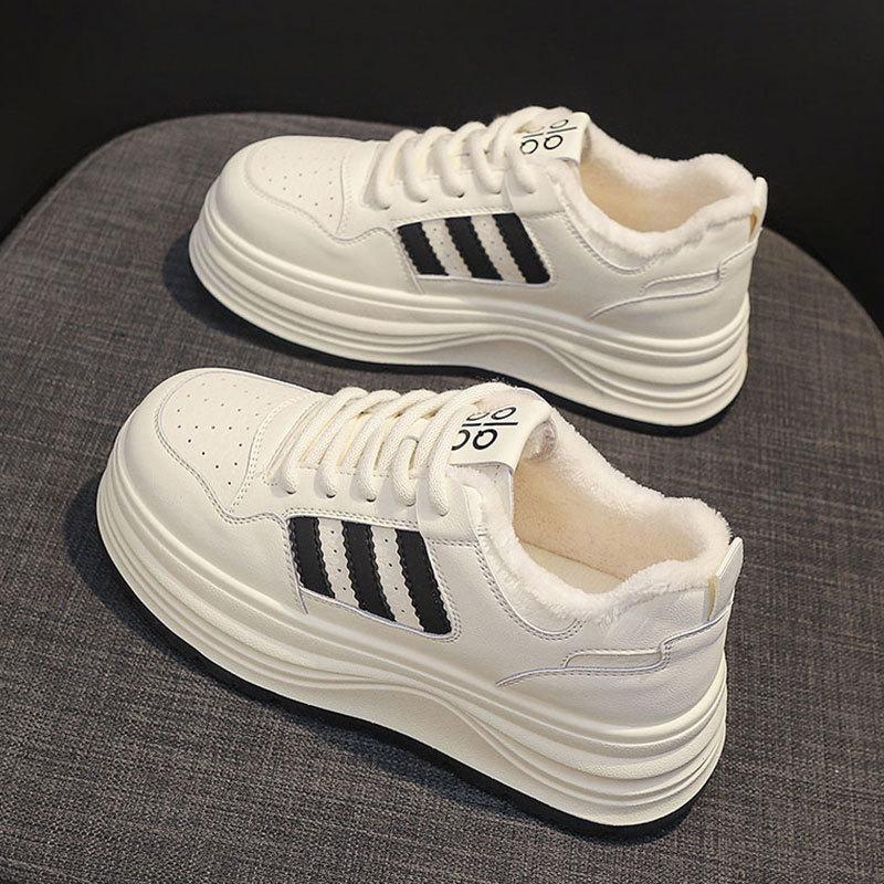 Leather Little White Shoes Women's Velvet Cotton Shoes Autumn and Winter New Shoes Versatile Platform Casual Shoes Muffin Sports Shoes