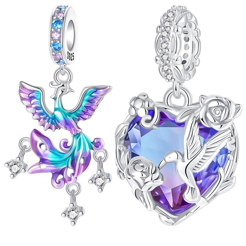 Copper Phoenix Bird Purple Pendant Charms Jewellery Fit Original Bracelet Necklace For Women Diy Gift