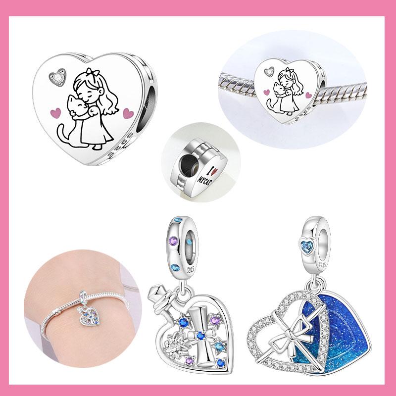 Copper Blue Heart Double-Layer Drift Bottle Chain Charms Beads Pendant For Original Bracelet Woman Girl Jewelry