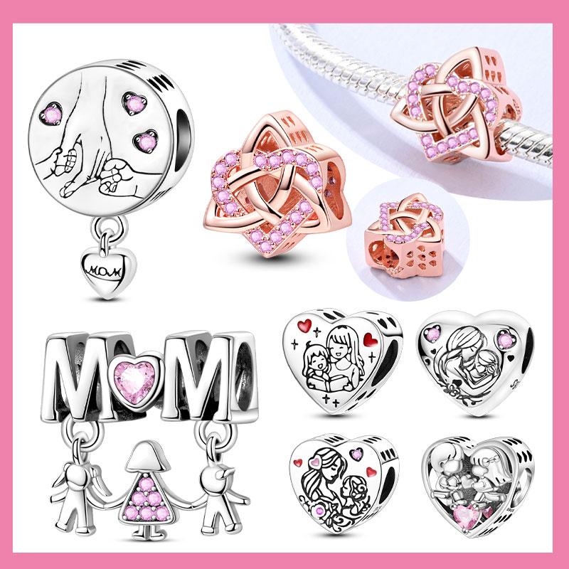 Original Copper Charm Bead Mother'S Day Love Heart Family Charm Bead Pendant Fits Bracelet Womens Jewelry Gifts