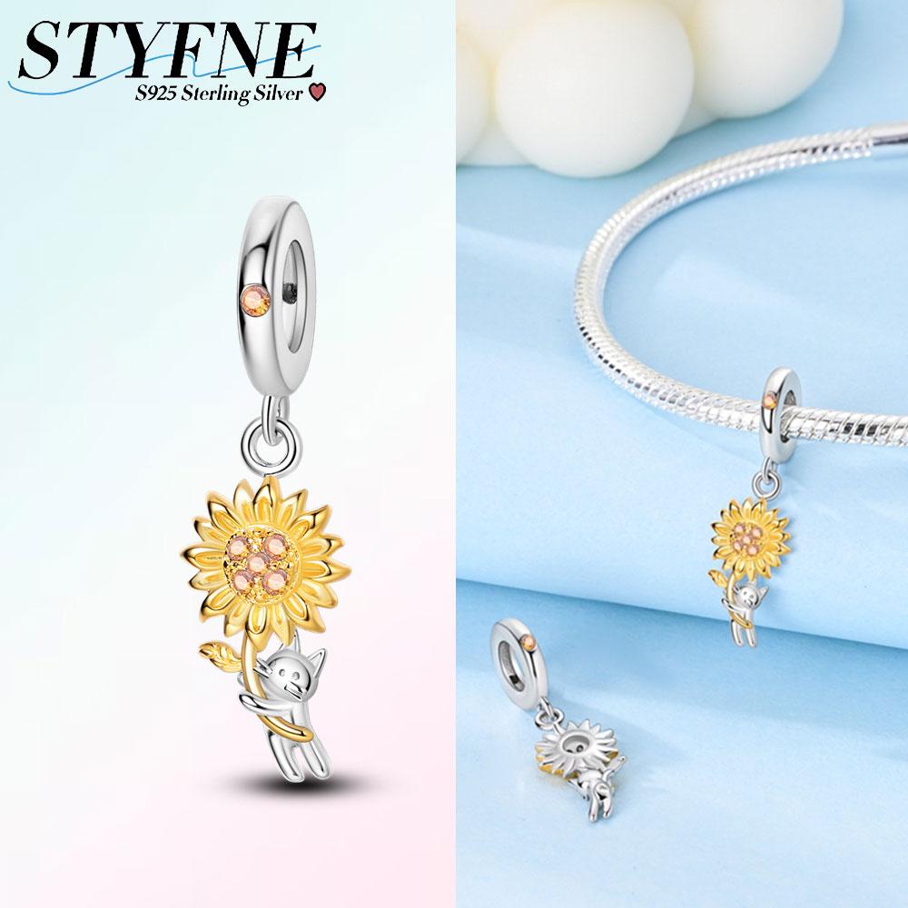 Original Charms Copper Creative Sunflower Cat Pendants Fit Plata Bracelets For Women Jewelry Making Fine Gifts