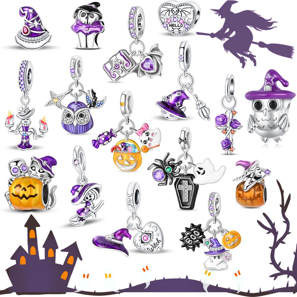Colorful Copper Purple Witch & Eagle Dangle Charm Fits Bracelet For Women Diy Halloween Pumpkin Beads Party Gift