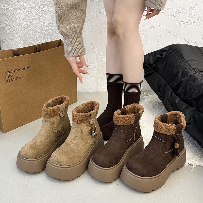 Women's Soft Elastic Winter Warm Cold Padded Snow Boots Thick Soles Non-slip Wear Outdoor Leisure Sports Furry Mouth Cotton Boots