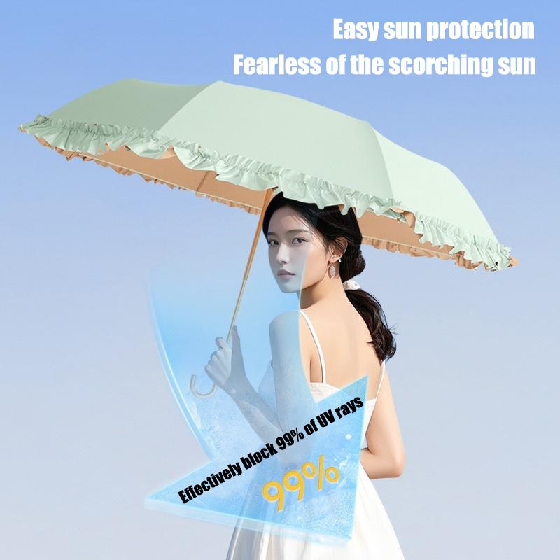 Solid Color Lace Three Fold Hook Umbrella Color Glue Anti UV Sun Umbrella Goddess Lightweight Portable Small Fresh Sun Umbrella