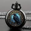 Unique Vintage Black Crow Mini Quartz Pocket Watch,Necklace Pendant With World Time Feature, Ideal Gift For Men & Women and Kids