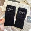 Plush Knitted Gloves Solid Color Half Finger Mittens Cute Bow Gloves Girl