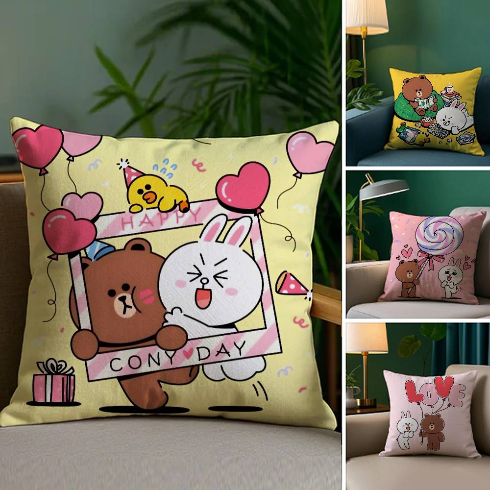 B-Brown Bear and C-Cony Pillow Case Plush Fabric Soft Double Sided Print Sofa Cushion Cover Throw Pillow Covers
