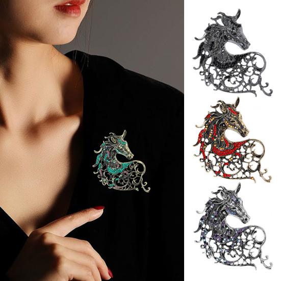 Brooch Alloy Horse Head Design Pin with Sparkling Rhinestones Retro Style