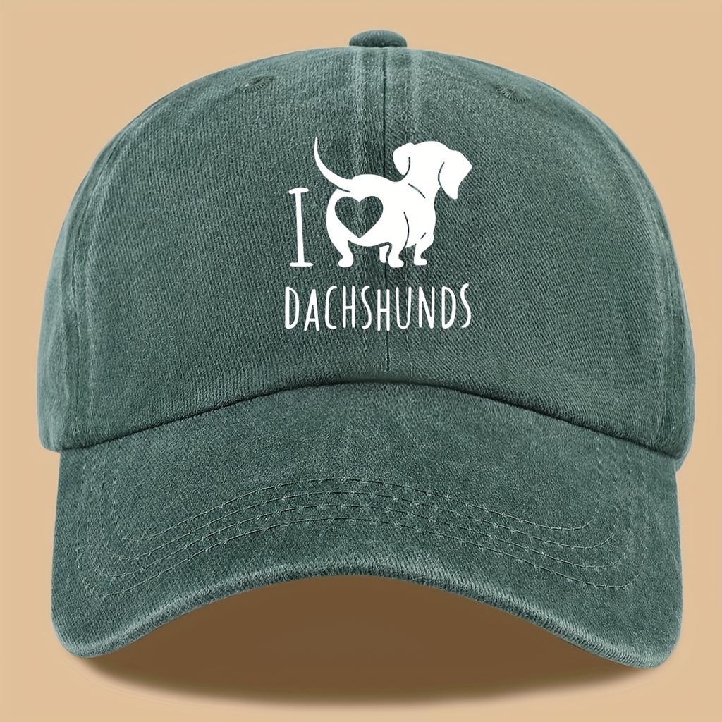 I Love Sausage Dog Print Text Pattern Baseball Cap, a Gift for Dog Lovers, Outdoor Leisure Hiking Duck Tongue Cap