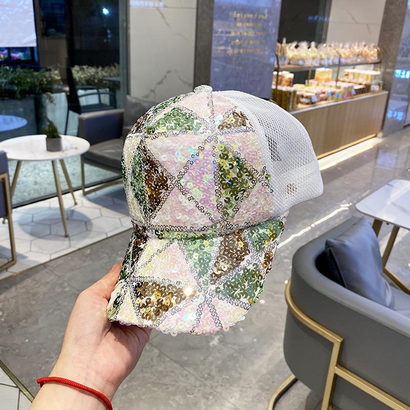 Colorful Sequined Duckbill Cap, Summer Breathable Mesh Baseball Cap, Youth Travel Shopping Sun Hat