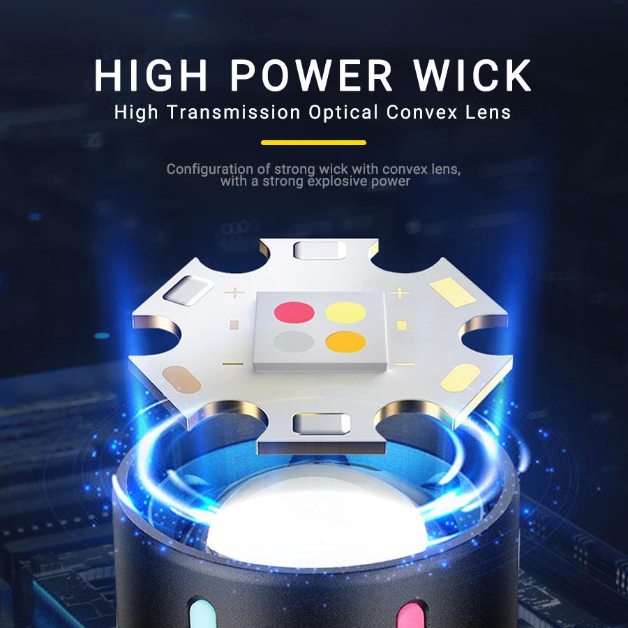 Super Bright 7070 LED Flashlight USB Rechargeable Tactical Zoom Flashlights with Red Yellow White Blue Light Spotlights Torch