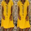 Stylish Summer Women's Short Sleeves V-neck Tunic Midi Dress For Plus Size Fashion