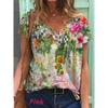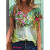 Stylish Womens V Neck Short Sleeve Blouse Soft Casual Baggy Floral T-shirt Tunic Tops
