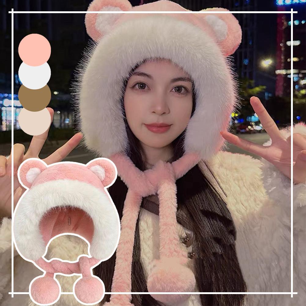 Women Winter Warm Kawaii Fur Imitation Mink Plush Hat Thickened Cute Bear Ear Japanese Bomber Hat Ear Protection Cap Gifts