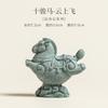 Green Sandstone Horses Flying On Clouds Tea Pet Vintage Exquisite Miniatures Tea Figurine Play Toys Tea Statue Ornaments Craft