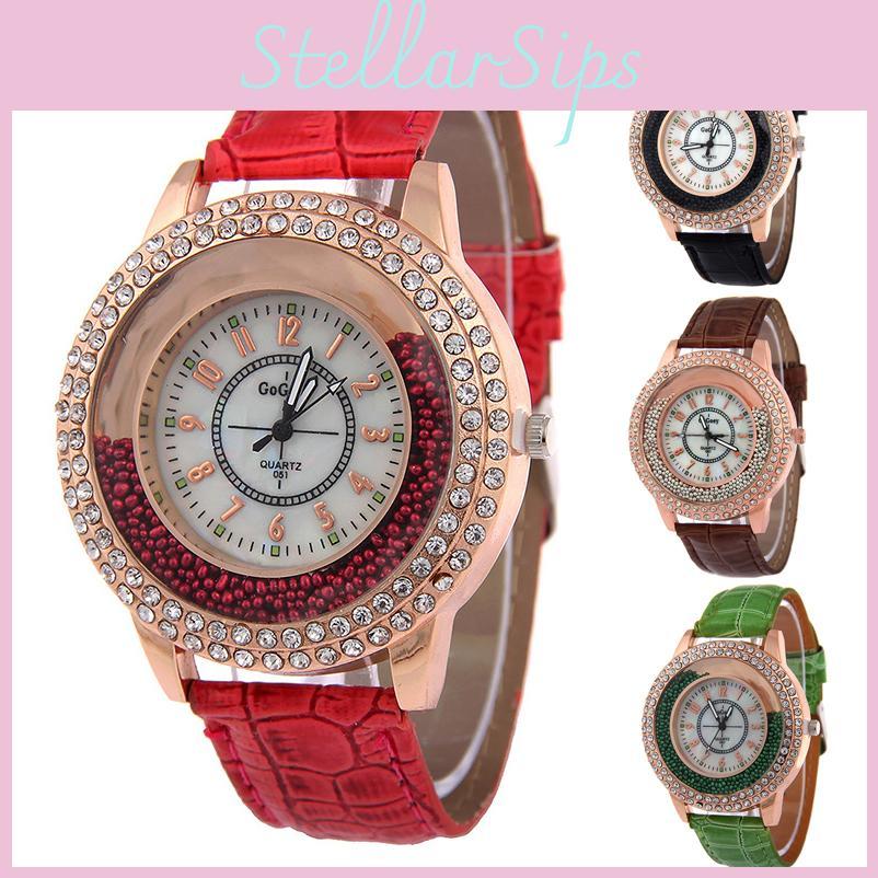 Designed with a unique blend of fashion-forward elements, this stylish timepiece features a dazzling rhinestone-studded dial that adds a touch of glamour to your wrist.The mineral-reinforced glass mirror ensures clarity and resistance against scratches, while the flat-top cone-shaped crown provides an easy and comfortable grasp for time adjustments.Available in a variety of vibrant colors including white, red, blue, black, orange, ect, there's an option to match every outfit and mood.