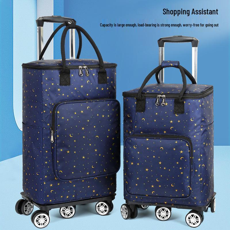 Portable Small Trolley Cart with Universal Wheels and Insulated Shopping Bag