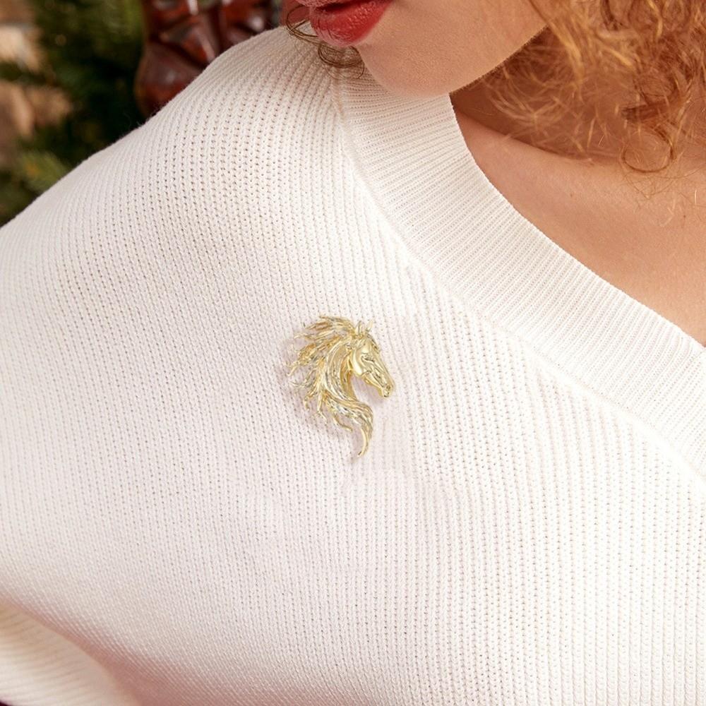 Luxury Horse Head Brooches Glossy Metal Badge Pin Classic Zodiac Animal Pins New Year Gifts