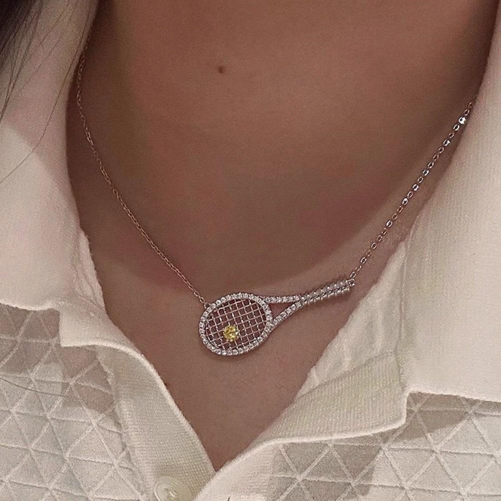 Zirconia Metal Pendant Necklace With Diamonds Sweater Chain Tennis Racket Necklace Jewelry Gifts