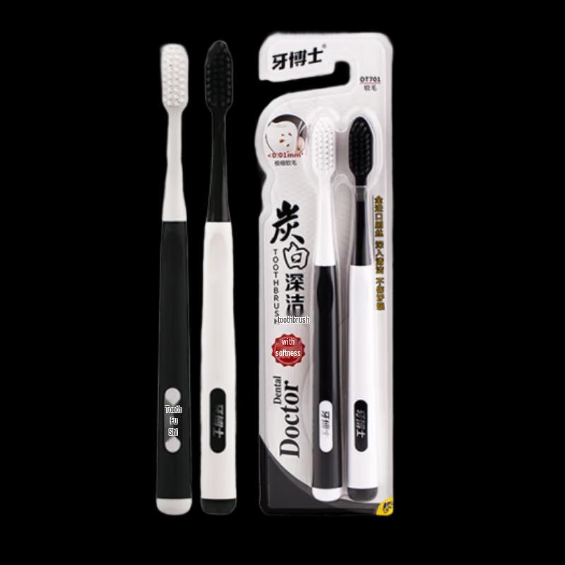Dr. Tooth Charcoal White Soft Bristle Toothbrush - 2-Pack