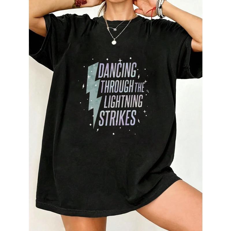 Oversized T Shirt Black Dancing Through The Lightning Strikes Graphic Print Casual Wear For Women Summer Outfit Streetwear Fashion Top