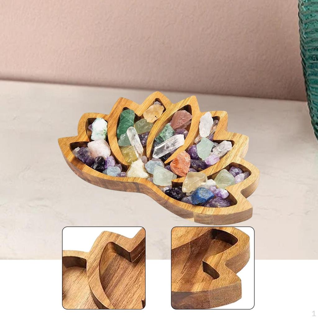 Stone Display Tray Storage Holder Wood Lotus Shaped Jewelry Dish for Rocks Keys