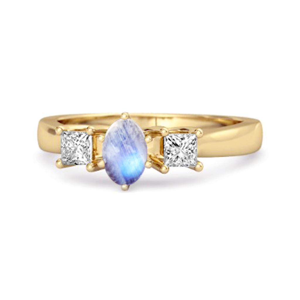 Moonstone three-stone ring in 925 sterling silver with an 8x6 mm oval center. A glowing and elegant piece for everyday and romantic moments.