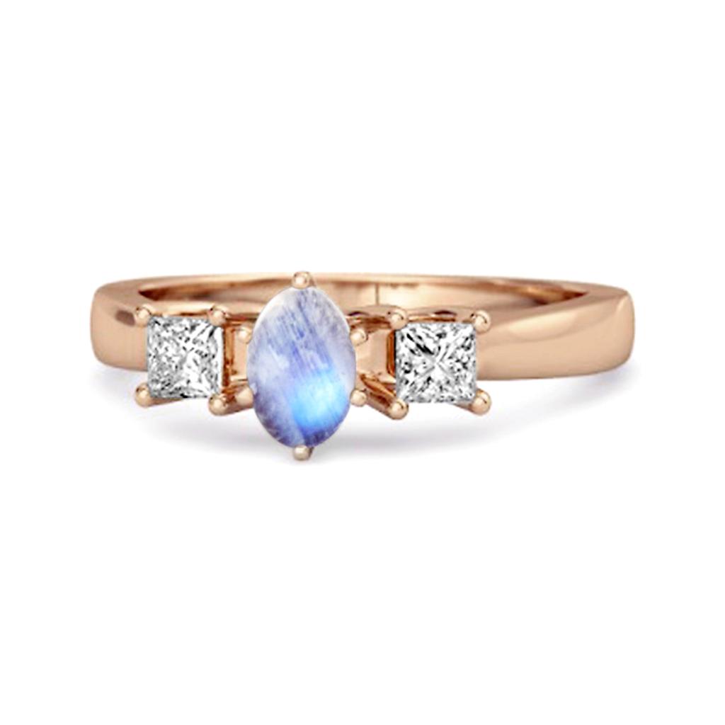 Moonstone Elegant Three Stone Ring - 925 Sterling Silver Rose Gold Vermeil