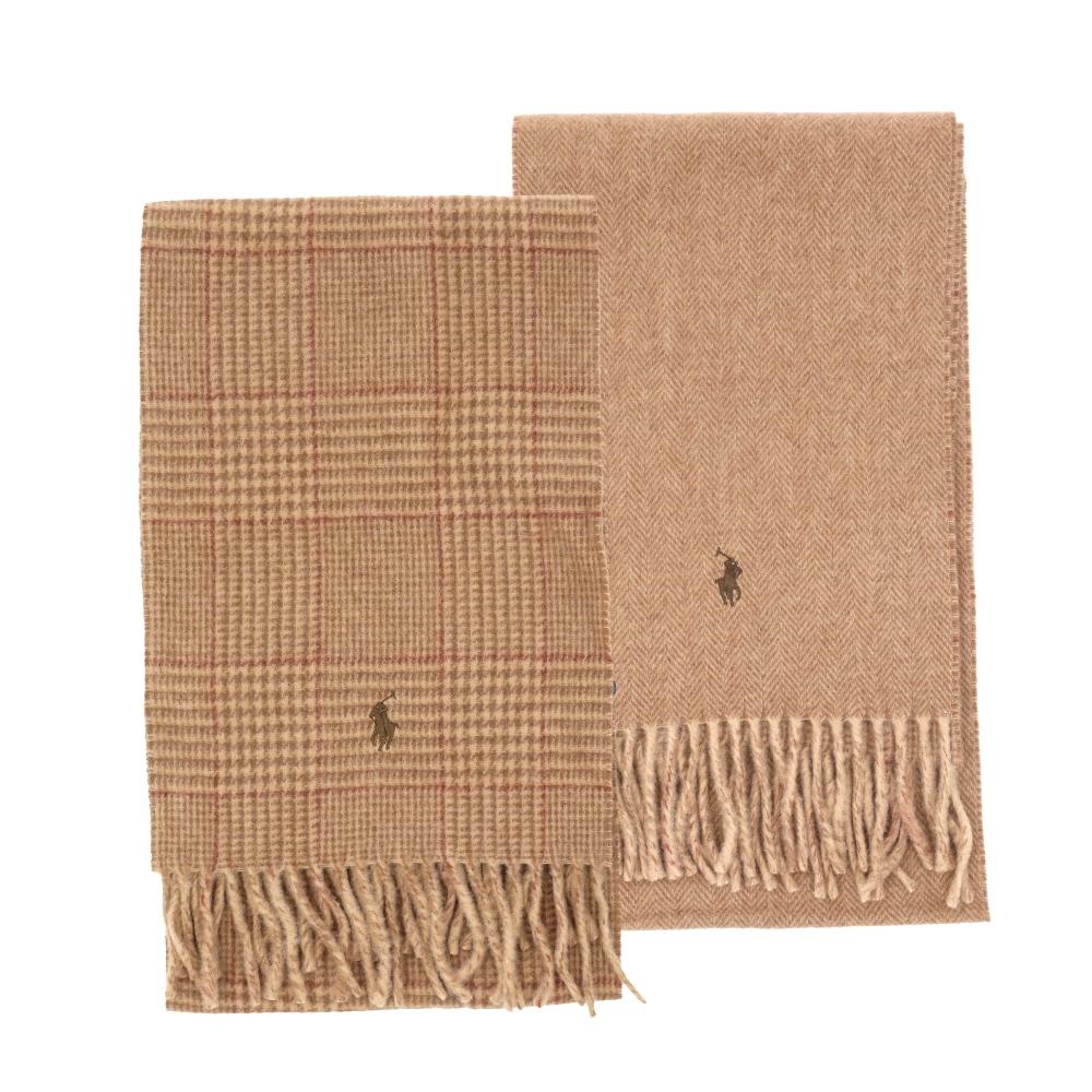 This product from the 2025 Autumn/Winter season features a reversible (dual-side usable) wool scarf with a check pattern. It has different check designs on the front and back, allowing you to flip it to match your style. The ends are adorned with fringe detailing, showcasing a luxurious finish. The classic yet sophisticated pony logo emphasizes the brand identity.