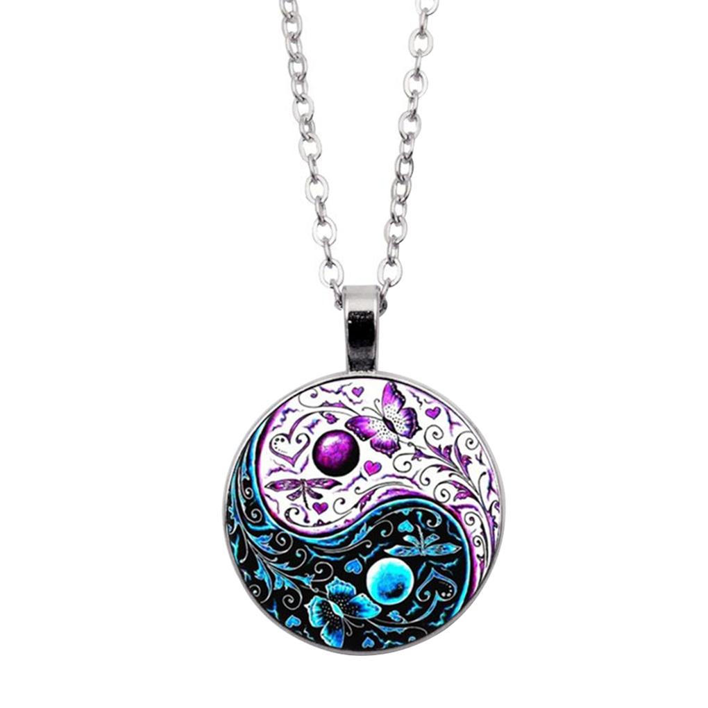 Women Vintage Necklace Contrast Color Tai Contrast Color Tai Pendant Girls Sweater Neck Chain Jewelry - Silver