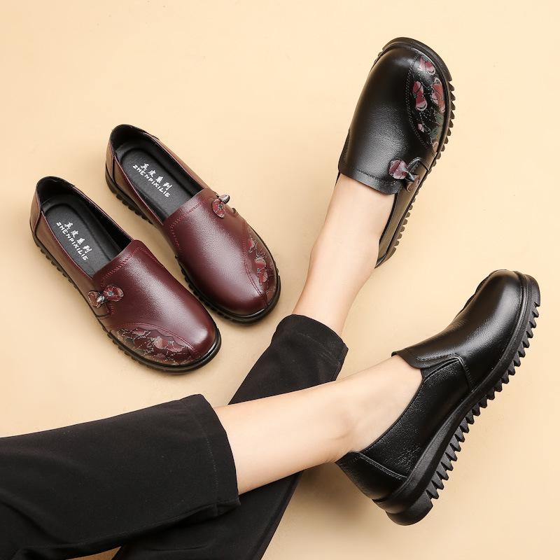 2023 Genuine Leather Soft Sole Women's Flat Shoes – Comfort & Non-Slip for Middle-aged & Elderly
