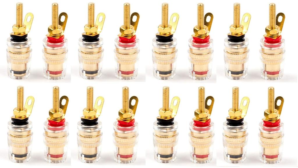 MINAKIKO Speaker 42mm Banana Plug Selectable Quantity of High-Performance Terminals, Gold-Plated, Compatible, (Set 16)