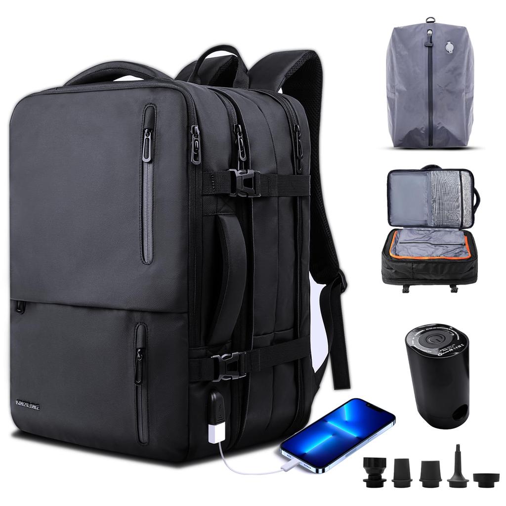 KINGSLONG Business Backpack, Expandable Capacity 25-55L, Includes Vacuum Compression Bag and Vacuum Pump, Multi-Layer Storage, Multiple Pockets,