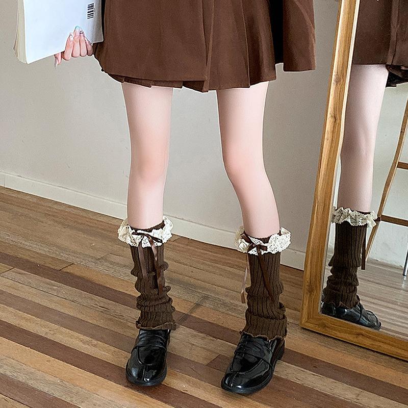 Lace-Trimmed Bow-Tie Knee-High Socks Fashionable Jk Socks Versatile And Slimming Slouch Socks