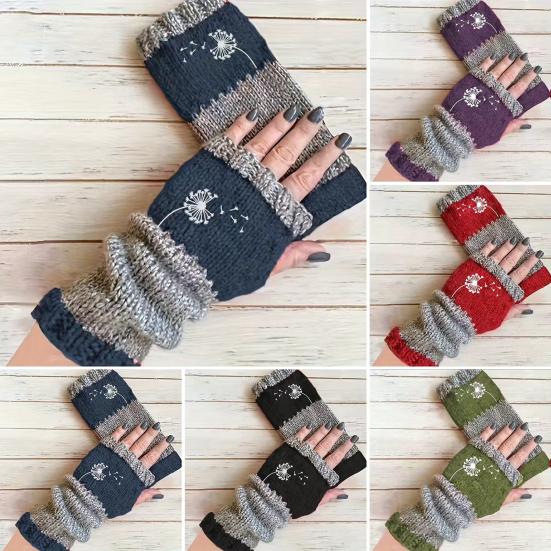 These fingerless gloves are crafted from high-quality knitted fabric, offering a soft, skin-friendly feel and excellent warmth retentionperfect for chilly weather. Featuring an exquisite white dandelion embroidery on the front, they add a delicate, romantic touch to your look. The fashionable color-blocking design combines soft, layered hues that complement autumn and winter wardrobes effortlessly.