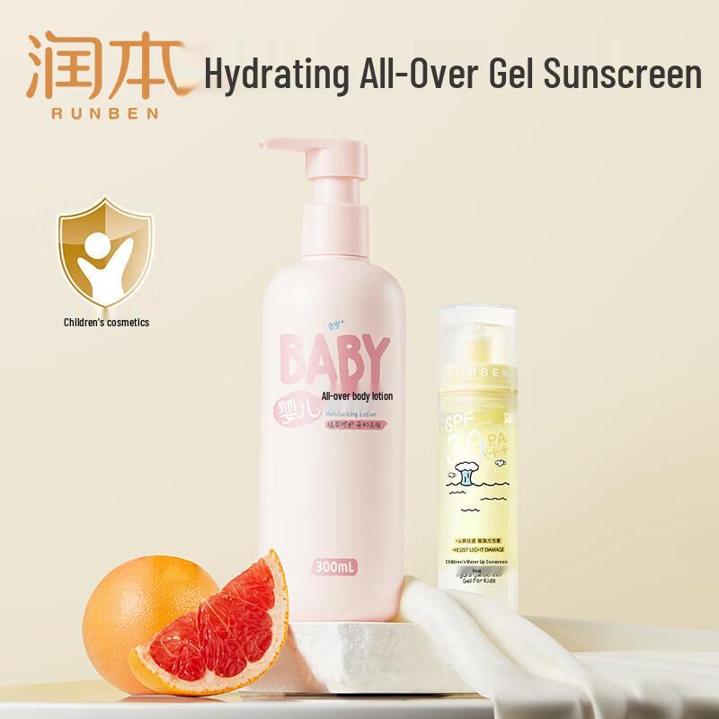 RUNBEN Baby Body Lotion & Kids Sunscreen Gel Set