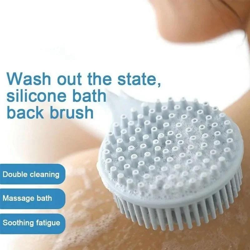 Double-Sided Silicone Brush Body Bath Shower Brush Long Handle Bathing Massage Back Body Exfoliating Scrub Skin Body Scrub Brush