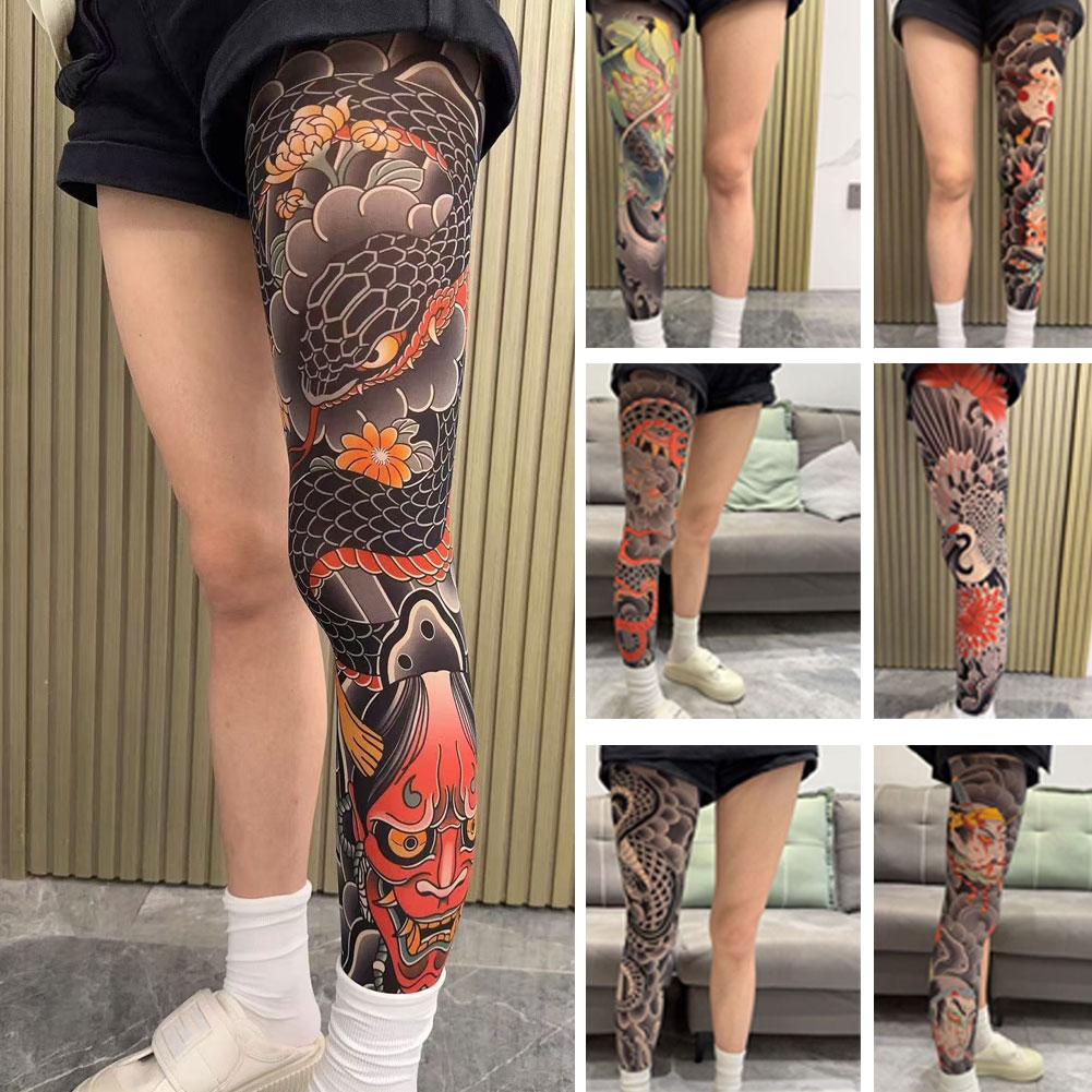 1PCS Tattoo-Inspired Single Leg Fishnet Stockings - Snag Resistant Sheer Tights for Women & Men, Comfortable Fashion Legwear