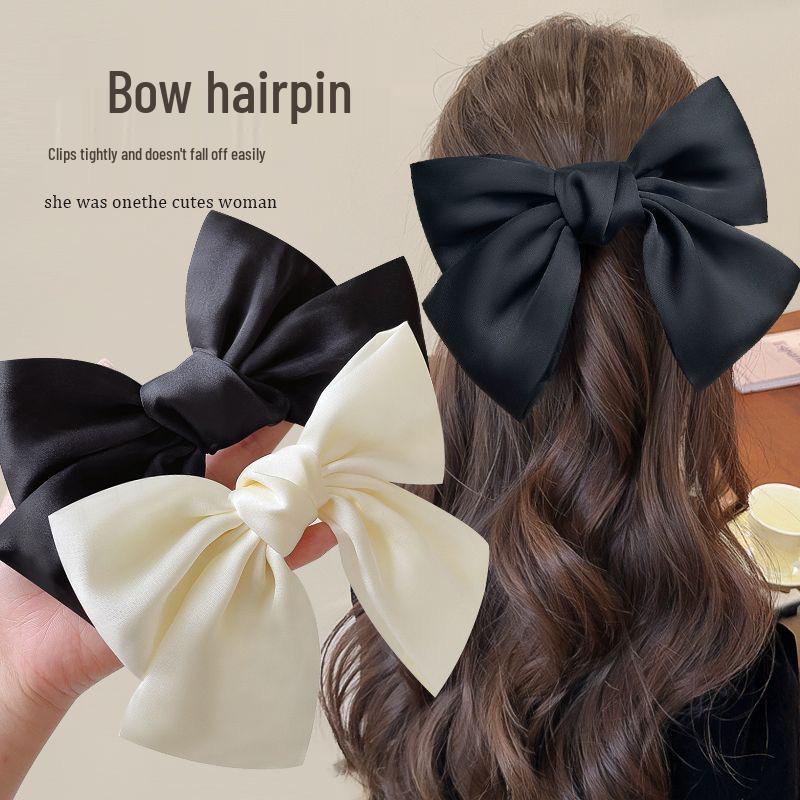 Black Satin Large Bow Headpiece Hair Clip - Women's Autumn/Winter 2025 Edition