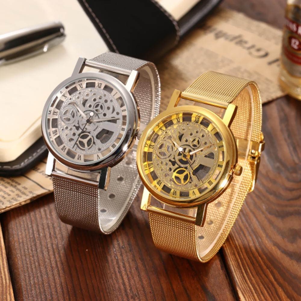 Fashion Metal Mesh Band Watch Men Vintage Hollow Quartz Watch Round Dial Wrist Watch