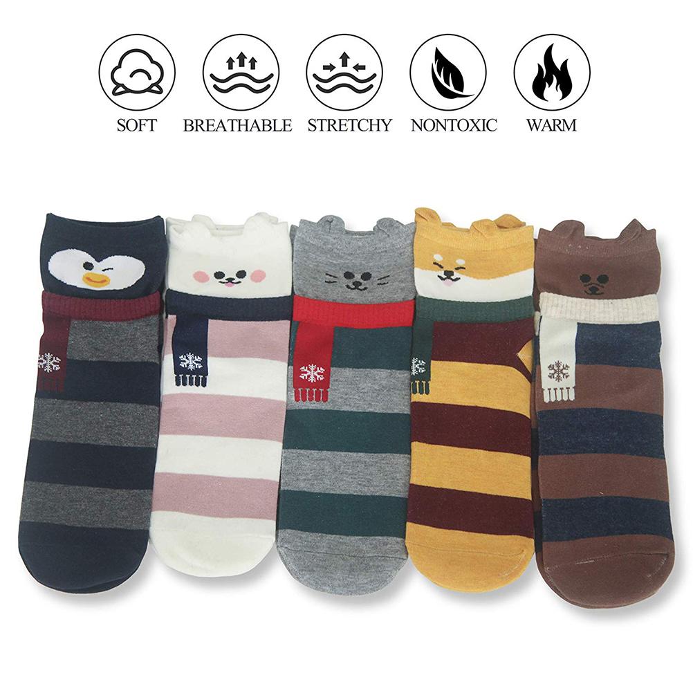 5 Pairs Women S Animal Socks Cute Cartoon Socks Colorful Striped Stockings